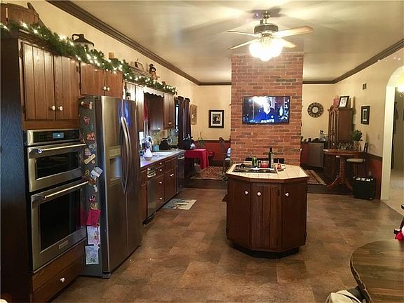 A VERY SPACIOUS Farmhouse with tons of CHARM that sits on a very nice 5 ACRES! A large open kitchen/dining room and two living rooms are perfect for entertaining! High ceilings, decorative fireplaces, original staircase and woodwork add to the charm of this home. Large master bedroom, with a walk thru closet to bathroom. The 4th bedroom has a convenient upper level laundry room built into it but still plenty of space left for a bedroom. BRAND NEW METAL SHINGLE ROOF. There is an outdoor wood burner that is plumbed into the house to help cut down on heating costs in the winter!
