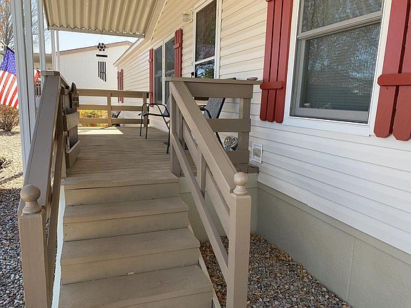 This is a comfortable well maintained manufactured home located in a park and sits on leased land, lot rent $503. per month, 3 bedrooms, 2 baths, split plan, new Anderson dual pane glass windows throughout, carpet and linoleum flooring, deck in front and back, awnings, partially furnished, vaulted ceilings, new roof, cement board skirting, beautiful view of mountains.Home