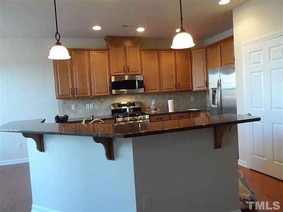 Gorgeous 3 Bedroom 2 and a half bath town home with UNFINISHED SPACIOUS BASEMENT, 2 car garage Double Width driveway, Granite counter top kitchen with back splash, dual Stainless steel sink, Stainless steel appliances. Microwave, dishwasher, Refrigerator, washer & Dryer, Pendant & Recessed lights, fire place with gas logs, ceiling fans in all rooms and screened porch, nice dense wooded view placed in Weldon Ridge with Great schools assigned. Close to Greenway and Tobacco Trail. Renters responsible for utilities. Owner pays HOA. Please wear masks when visiting the property. Remove shoes in the front.