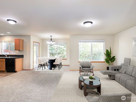 This charming two-story home offers a perfect blend of comfort and functionality. Enjoy a fully fenced, low-maintenance, mostly shaded backyard with a patio—ideal for relaxing or entertaining. The main level features a bright open-concept kitchen, dining nook with patio access, spacious living area, and a convenient half bath. Upstairs, find three bedrooms and a laundry room for added ease. The primary suite boasts a walk-in closet and private ensuite with a separate soaker tub and shower. Two additional bedrooms share a stylish Jack-and-Jill bath with dual vanity. Complete with a two-car garage and tasteful, neutral finishes throughout, and a convenient East Bremerton location, this home is move-in ready!