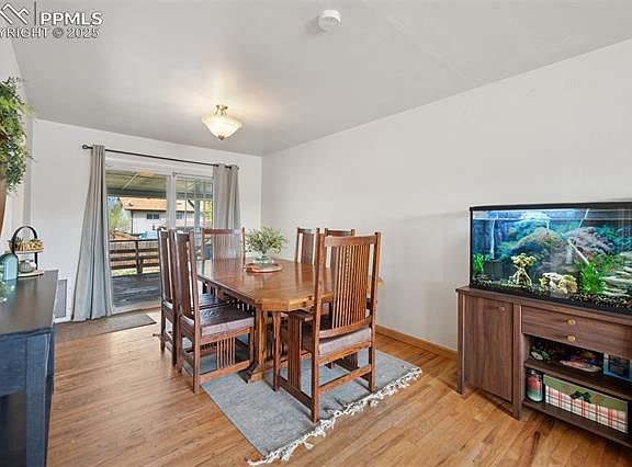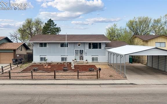 Welcome Home! NO HOA! Charming 5-bedroom, 3-bathroom home offering 2,167 sq. ft. of comfortable living space, ready to impress! Features include hardwood floors, newer kitchen appliances, and carpet on the lower level. Enjoy a large, fully fenced backyard with mountain views, perfect for entertaining or relaxing, with a fenced-off garden area. The shed located in the backyard even has electricity. Includes a one-car attached garage and a two-car carport. The garage door was recently serviced with a 5-year warranty (bracing bar at the top with new cables and bearings). The water heater was replaced last year. Conveniently located near schools, shopping, and parks, Around 5 mins to Fort Carson base, and right down the road the brand new king Soopers is currently being built and will be completed soon! This is the one you’ve been waiting for! Schedule your showing today!