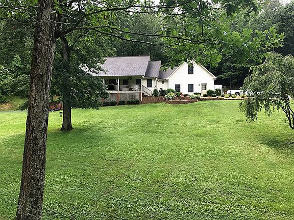 A REAL TARHEEL GEM!! Rare Opportunity, this gorgeous white creek-front house with 2 acres of land at the end of the road in the Tarheel subdivision is up for sale! The main level boasts front & back porch, sunroom, master bed & bath with jacuzzi tub & walk-in closet, 2 bedrooms, formal dining room, AND a 2 car attached garage. Upstairs you will find 2 more rooms, suitable for offices, nursery, or bonus room. Travel to the SECOND driveway into this house to the Basement Garage big enough to hold 2 more vehicles, lawn equipment, or outdoor recreational vehicles; with 3 extra divided rooms for tools, game room, or gym. The seller's favorite features - ALL the storage space, the massive garages, fish pond, AND the rolling green lawn perfect for gatherings! Your new dream home is here!