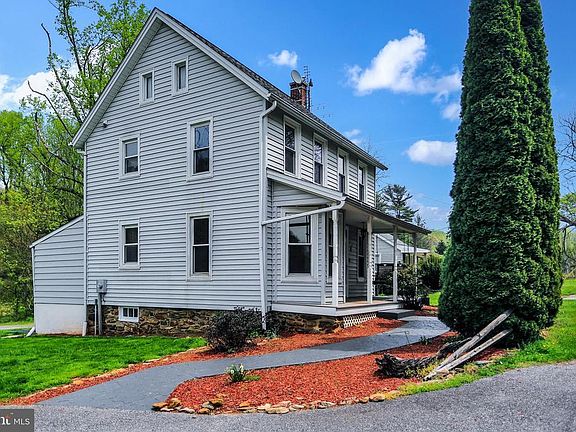 Location, location, location!! Get the best of both worlds, country living on 3.10 acres, and the convenience of shopping, dining and entertaining less than five minutes away from home. This charming 1900's renovated country farmhouse is situated on 3.10 acres in Southern Schools. This property features a detached two car garage plus an additional outbuilding/workshop with woodstove and shed area for storing lawn tractors, etc. Entertain friends and family on your back patio while sitting by the fire pit or spend a quite evening relaxing to the sounds of the rippling stream in your backyard. Inside, on the main level you will find a kitchen with dining area, updated kitchen counters and cabinets, updated flooring and fresh paint throughout the entire house. Off the kitchen is a family room with storage closet. Upstairs there are two bedrooms with ample closet space, a full bathroom with double vanity and tub/shower combination, walk up access to a large attic perfect for storage. The laundry and utilities are located in the basement. The mudroom is located off the kitchen and provides access to the basement and back patio. This home features a covered front porch with swing and stamped concrete walkway that leads to the driveway and detached two car garage.