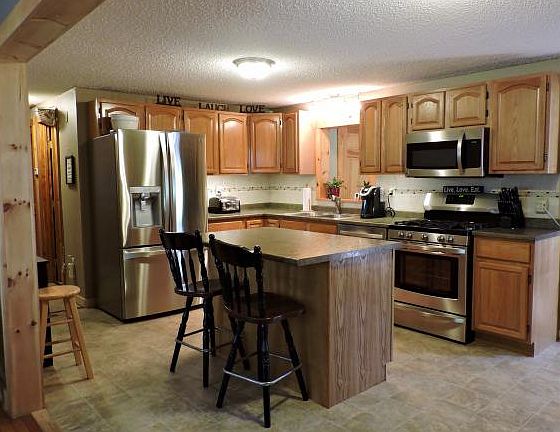 Well cared for ranch home less than a mile from Lake Fairlee!! Recently upgraded kitchen with large island and new appliances, formal dining room, living room, master bedroom suite with ample closets and full bath, 2 more bedrooms and an office/den all on the 1st floor. Basement w large family room, laundry, and storage. Two decks. Efficient propane heat & hot water. 1.2 acres of mostly flat open lawn to play on and enjoy!