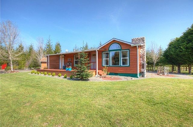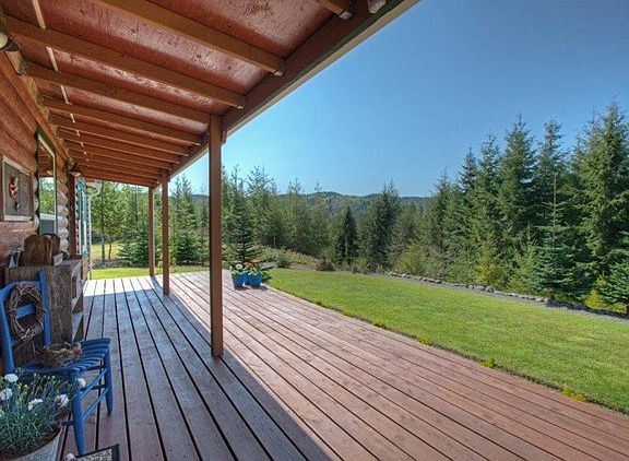 With custom log siding this home is very clean, unique, better than new with new floor coverings, decorative custom rock fireplace, updated kitchen, bfkfst bar, custom cabinets, vaulted ceilings, walk-in closet, and upgraded bath rooms. Located on 6.04 acres gated and partially fenced, this property shows pride of ownership with exceptional landscaping, trails throughout the woods, 12'X20' barn/bunkhouse, green house with water & power, 2 car 24'X24' det garage and 10'X20' barn style shop.