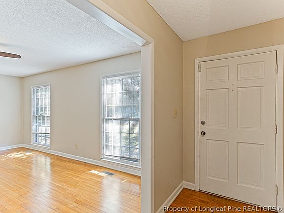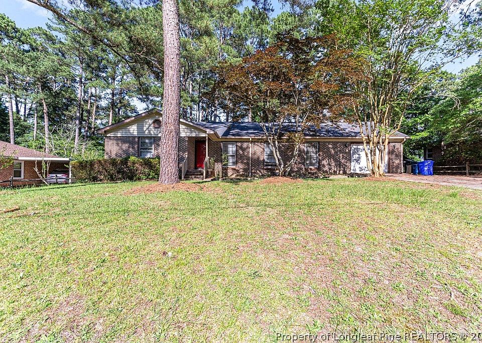 Summerhill, Minutes to Ft. Bragg Gate, 3 bedrooms 2 bath, lots of updates include buffed hardwood floors, painted white cabinets with new countertops in kitchen, new refrigerator, updated range, tile floors in kitchen and den, living room & dining room, den with fireplace, new sliding glass doors lead to heated and cooled large sunroom, updated fixtures, new vanity tops In hall bath and fixtures, master has new vanity, light fixtures and tiled shower, new HVAC installed 2021, singe car garage with storage, move in ready