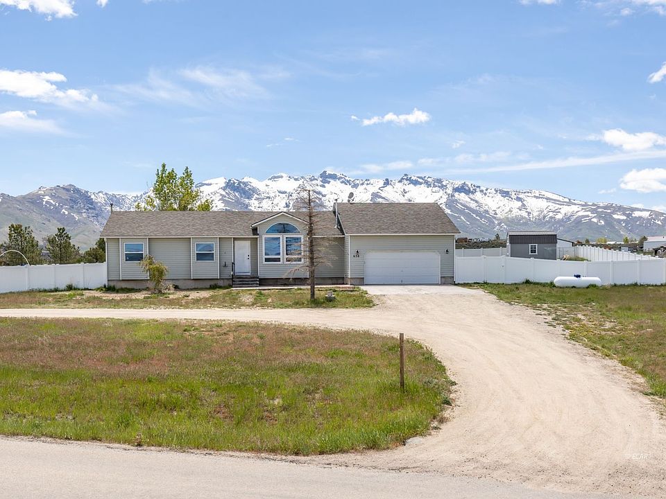 This charming 4-bedroom, 3-bathroom home offers comfort, versatility, and breathtaking views of the majestic Ruby Mountains.As you step inside, you're greeted by generously sized bedrooms, providing ample space for relaxation.The layout includes a convenient second master bedroom in the basement, offering flexibility for guests or family members. Additionally, there's a versatile office/den that could easily serve as an extra bedroom, catering to your changing needs.Cozy gatherings await in the living room, featuring a charming pellet stove that adds warmth and ambiance on chilly evenings. For added convenience, a second pellet stove graces the downstairs master bedroom, ensuring comfort throughout the home.Step outside to discover your own private oasis. The backyard is a sprawling expanse, enclosed by durable white vinyl fencing for both privacy and aesthetics. A sizable storage shed provides ample space for storing outdoor equipment, keeping your property organized and tidy. Beyond the yard, envision the possibilities - a 60x60 shop, area for animals, or anything your heart desires!