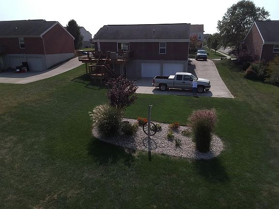 Arlinghaus built ranch home. Deep lot, wooded view. Gas range, all kitchen appliances stay. Washer and dryer included. Beautiful landscaping, built in garage, lower level with walk out. Close, but not too close to community pool; within walking distance. Minutes from expressways. Conveniently located in Burlington which has one of the lowest tax rates in Northern Kentucky.