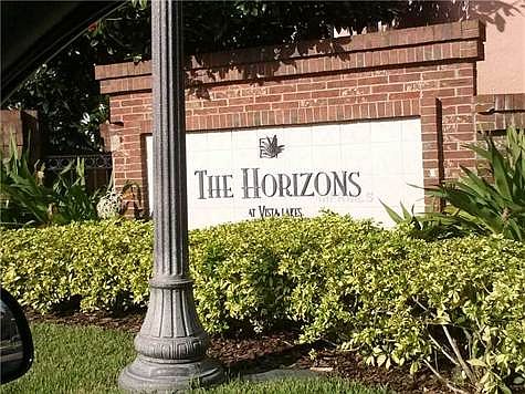Large 1st floor spacious floor plan condominium with three bedrooms with 2 large bathrooms in Vista Lakes. With just a few steps from Vista Lake Elementary and Odyssey Middle School. This spacious apartment is near numerous shopping and dining options. The Orlando International Airport, Promenade Mall and Theater Movie, the Lake Nona Medical City and the Valencia Community College also a convenient commute from Horizon Condominium. All appliances included, washer and dryer and ample closets. Landscaping view from the Screened Patio. For residents convenience the community offers a resort pool.