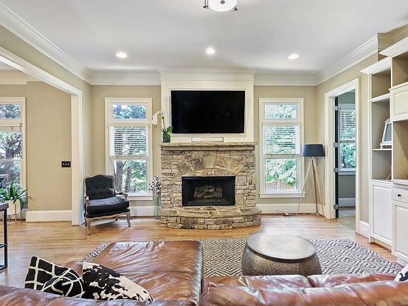 Beautiful home close to everything Sandy Springs has to offer! On the main level, you're welcomed by 10' ceilings and a light-filled separate dining room. Walk through a gorgeous, paneled hallway into an open concept kitchen/ living area featuring a stone fireplace. Space for an eat in kitchen table, as well as a screened-in porch off of the kitchen for plenty of hangout space. Small bedroom on main level that can be used for an office or playroom with a full bath attached. Upstairs you'll find double doors that lead into a huge master with his/hers custom closets, a large separate sitting area and bathroom with separate tub and stand up shower. The 2 additional bedrooms upstairs have their own full baths attached. Basement level has fresh new flooring, tons of storage and walks out to a small fenced in backyard. Large open living area in the basement with a full bath, as well as a separate flex room with built ins. Everything was meticulously well kept by current owners- will be a fabulous home to own!