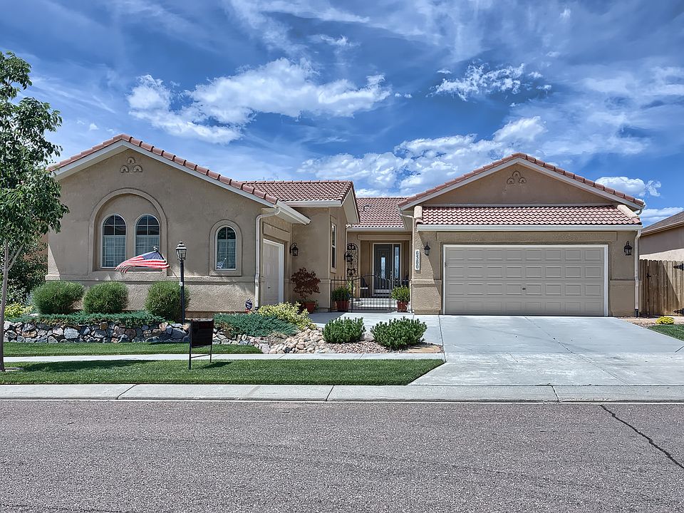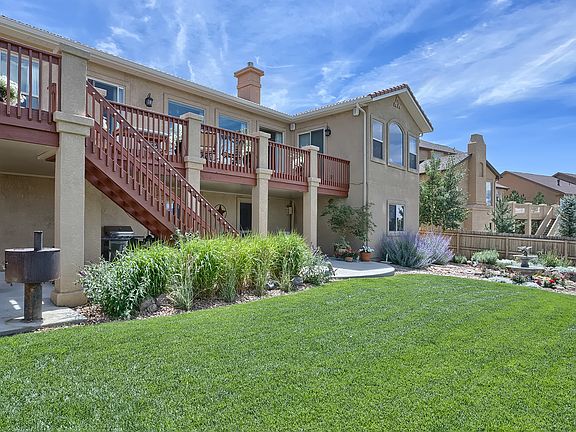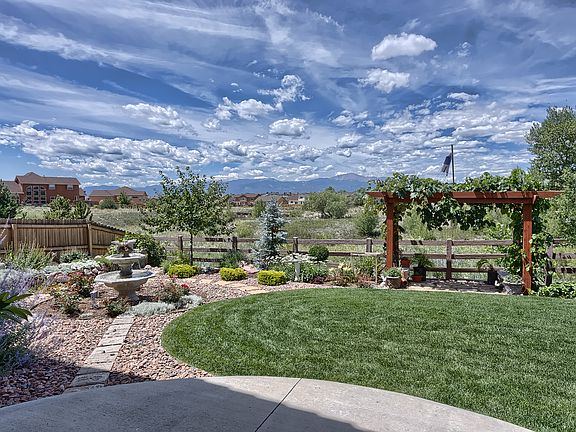 Outstanding stucco ranch home w/ incredible Pikes Peak & Front range views on a beautiful lot backing to open space! Located on a quiet cul-de-sac, this home has it all! Features include; great room w/ hardwood floors, fireplace, spacious dining room w/ walk-out to beautiful trex deck w/ amazing views, gourmet kitchen w/ slab granite, stainless steel appliances, double ovens, maple glazed 42" cabinets, Zodiaq Quartz counters, travertine back splash, walk-in pantry, large nook, office on main, large master w/ walk-out to deck, 5 piece bath, jetted tub, 2nd bedroom on main w/ full bath & 1/2 bath on main, walk-out lower level w/ family room & fireplace, wet bar w/ maple glaze cabinets, three additional bedrooms & two baths in lower level, large covered patio to enjoy the amazing professionally landscaped fenced back yard w/ lush grass, fruit trees & stunning perennial flowers. Upgrades include, two central air units, lower vinyl windows, over 20k in landscaping, central vacuum, iron gate on front entrance & trex deck w/ under cover!