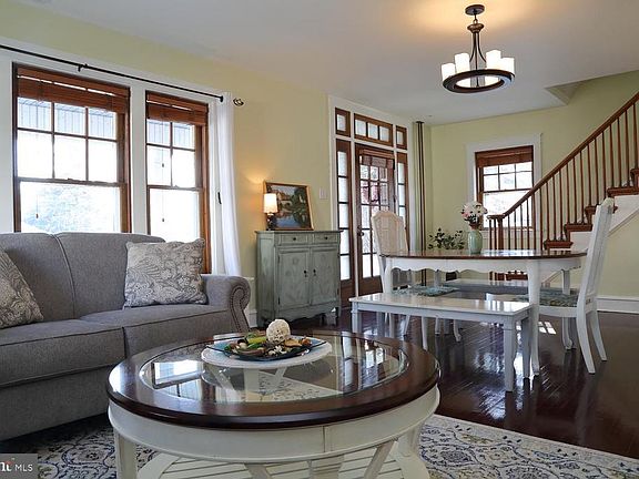 Beautiful brick home in the charming town of East Petersburg - Hempfield School District. 4 BR, 1.5 BA home with bonus room in basement for playroom, workshop, etc. This home features wood floors throughout, original stained woodwork, high ceilings, built-in corner cupboard, updated kitchen and baths, cedar closet, newer heat pump/central air, and so much more! Tons of storage in the basement and large attic, along with a large concrete block 2-car garage AND a large outbuilding with electric -- studio? workshop? Enjoy the level backyard with shade trees, along with the large front porch. Walking distance to restaurants, shops, banks, park and elementary school. Schedule your showing today!