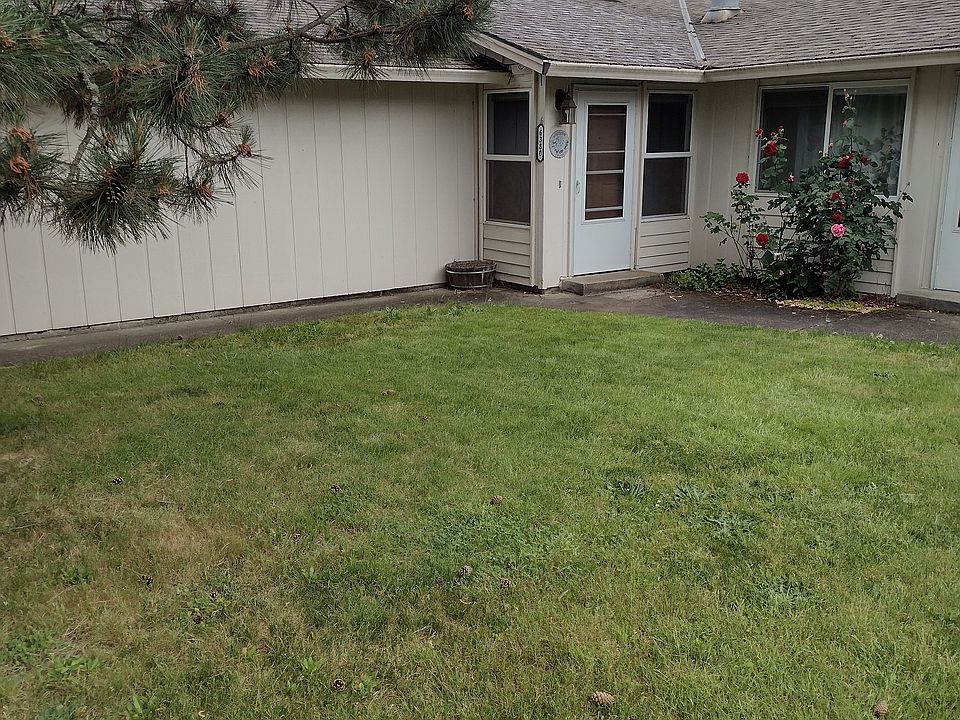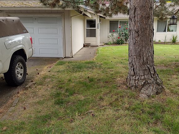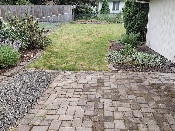 Duplex that has two large bedrooms and one standard which are all freshly painted, new floors in most, master bath updated, attached garage, covered porch, fenced yard, wood stove, and new dishwasher. This also has an enclosed shed next to garage with an extra parking area. Walking distance to Hazeldale park and bus line and also close to Intel and Nike. Renter pays electric and maintains backyard.