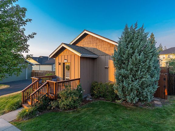 This charming 2-bedroom, 2-bathroom home provides single-level living with 1,133 sq. ft. of comfort and style on a .13-acre corner lot. Freshly painted on the exterior, the home features a spacious primary suite and an inviting open concept living space highlighted by vaulted ceilings and hardwood floors. Enjoy year-round comfort with forced air heating and central AC, along with a cozy gas fireplace for chilly evenings. The sunny kitchen has abundant counter space, stainless steel appliances, a large island and flows seamlessly into the dining area. Step outside to discover two decks and a fully fenced backyard with low maintenance landscaping ready for your personal touches. Additional highlights include a laundry room, and 2-car attached garage with storage. Located on Bend's northside, you will enjoy easy access to Highway 97, schools, and shopping. Whether looking for a primary residence, second home, or investment property this home has a lot to offer!