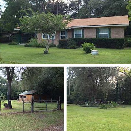 Wonderful and well kept home on stunning property~ Ready for you and your RV and all your "STUFF" that you can't keep in a subdivision. Spacious floor plan features open kitchen and dining concept with large living area. Plenty of counter and cabinet space and sunny window overlooking the well established back yard. The home offers fairly recent painted exterior, covered car port and a laundry room that is detached off of the car port area. Three bedrooms with a full size bath in the hall and half bath in the master bedroom area. Flex room up front would be a great den or study or even a formal dining room. The property is STUNNING with mature landscapes featuring some of the old southern favorites such as hydrangeas, fig trees, live oaks, azaleas and more. The entire backyard is fenced with an open patio and right next door is a fenced area with a large TWO STALL Pole Barn complete with hay room and tack room. The house sits on .50 acre and the additional 1.13 acres is also being sold with the home as well...the barn sits on this property and it extends further down towards Rosebud Acres. The property boundary marker is located just prior to the "Dead End" sign on Rosebud. You can follow the path and find the marker right next to the fence . This road is not a through way or ingress/egress and can be fenced off according to the seller.