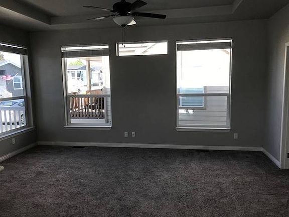 Beautiful 1296 sf (approx.) 2 bedroom, 2 bath + den home with attached garage in premier 55+ community in Bend, OR. There is a spacious built in desk in the den with plenty of drawer and desktop space. This home has all stainless steel gas appliances, to include gas stove, over stove built in microwave, dishwasher, side by side refrigerator with in door water and ice and beautiful stainless steel farm apron sink in the kitchen. The home has double French doors leading to the den. The kitchen has an abundance of cupboard and counter space with a custom tile backsplash along with toe kick heat registers and a skylight. This home custom ceiling fans in the living room and master bedroom along with custom pendants over the eating bar. The master bath features a custom tile walk in shower with a seating bench. All this, along with dual sinks, matching backsplash make for a spacious and utilitarian master suite. (All floor plans are subject to change and are approximate in measurements.) Forced Air: Yes Carpeted Floors: Yes Internet Ready: Yes TV/Cable Ready: Yes Dishwasher: Yes Disposal: Yes Garage: Yes Gas Range: Yes Heat Pump: Yes Microwave: Yes Walk-In Shower: Yes