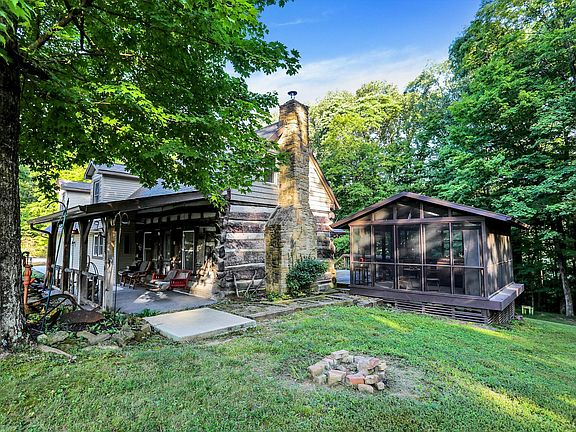Move-In Ready! Have you been searching for a blend of Quality and Character? Or the perfect AirBNB investment? This is it! 3BR 2BA 2Car nearly 3000sf home on 2 acres! Discover the draw of this remarkably well-maintained northern Brown County getaway. Originally an 1800's cabin it was expanded to bring in modern comforts while preserving the log cabin's timeless character. Newer roof, dual split system HVAC, and recently sided exterior with vinyl windows. Corian solid surface countertops, original hardwood floors, gorgeous woodwork, natural exposed wood beams, and updated luxury vinyl plank. Open floor plan flows well creating an ideal circular floor plan for connectivity and entertaining. Cozy up in the log cabin great room around the fireplace. The split br's w/sep stair cases provide great space to retreat as well as allows for privacy away from guest or kids room. Step out back to your spacious deck overlooking the mature trees and rolling hills. Cold or raining? No problem, relax in your screened-in Hot Tub(newer & barely used) house or sip some tea on the covered front porch. The property boasts two fire pits, its very own outhouse, a shed with a loft, ample parking, and a backdrop of trees, trails, and wildlife - an idyllic haven for nature enthusiasts seeking an escape from the bustling world. Perfectly situated just south of Johnson County. Near the lakes, Trafalgar, state park. Short drive to Greenwood, Franklin, Indianapolis. Or head just south to Columbus or Bloomington. Beech Tree Road has been repaved with a brand new road as well!