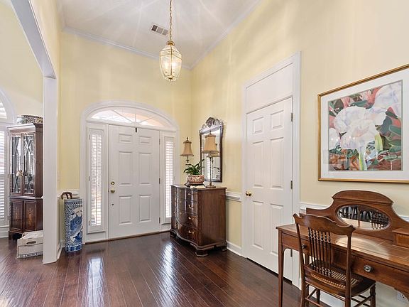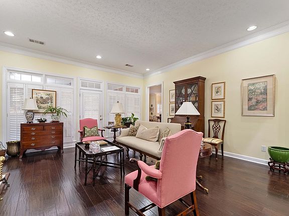 This beautiful home has 10-12' ceilings, hardwood floors, 2 fireplaces with bookcases on both sides of fireplaces. Remodeled kitchen overlooks keeping room and great room. Kitchen opens to covered patio overlooking pool area. 4 bedrooms(three have walk in closets) 3 1/2 baths. One bedroom is being used as office. Large formal dining room with specialty ceiling and window. Master suite has large bath with oversized shower, separate tub, double vanities and double walk in closets. Plantation shutters thru out. Covered patio leading to in ground pool with salt system.