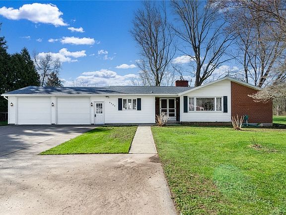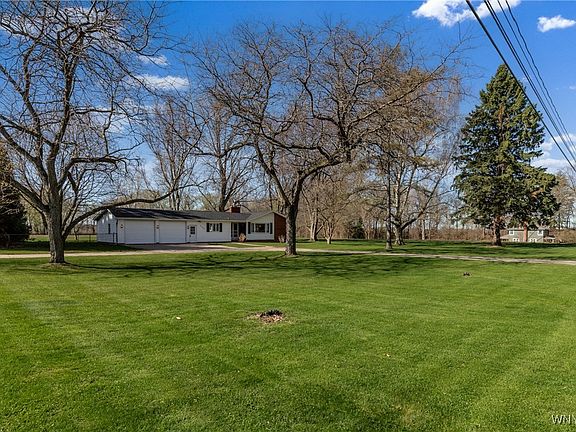 This well-maintained Country Ranch style home is truly a must see! Situated on a 1.4 acre partially fenced yard, it is across the street from Lake Ontario and is just down the street from Olcott Beach and parks. Upon entering the circular driveway, you'll find the welcoming covered front entrance to a slate foyer and the large eat-in kitchen with knotty pine cathedral ceiling, an abundance of rich Burgundy Oak cabinets, huge peninsula w/loads of countertop space, new flooring, ceiling fan and slider to rear concrete patio. All kitchen appliances (and washer and dryer) are included. Hardwood flooring throughout the family and living rooms. Gas fireplace (not used in years), built-in shelves, second slider to patio. Two full baths with new flooring (one in primary bedroom). Brand new carpeting in all 4 bedrooms. Some updates include tear off roof in 2021, newer windows, Forced hot air heat w/central air, more. The full basement has inside access and Bilko door entrance, 200 AMP service, laundry area, shelving, a pool table and a WBFP (never used by this family). Huge 28 x 28 attached garage w/ 2 electric door openers and a convenient rear overhead door. Part of backyard is fully fenced for pets, etc. Dual Heat sources throughout the entire home... both Natural Gas... original hot water baseboard and recent forced hot air (High efficiency furnace) with central air. Bedroom off living room was original kitchen and has plumbing under new carpet for possible first floor laundry. Showings begin right away! Delayed negotiations... Offers must be submitted by 2 PM on Wednesday, May 7th.