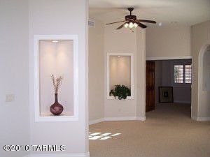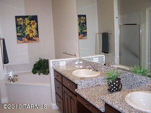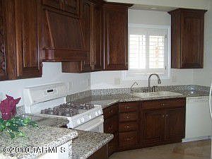 Mediterranean Executive Villa 2BR 2BA split plan in secluded gated community of 6 homes w/fabulous Mt views! Beautiful kitchen with tons of cherry cabinets(42in) w/pullouts, crown molding, granite slab counters & travertine floor.Double door entry into den. Nicely appointed with lighted niches, fans in every room, skylights, plantation shutters thru out & instant hot water in mstr. Roof coated 2 yrs ago.Immaculate Home shows pride of ownership.
