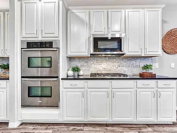 3.25% ASSUMABLE VA LOAN WITH QUALIFICATION. Gorgeous two-story in the coveted Wheatlands and Cherry Creek School District! This gem has been loved through the years by only two owners. You will appreciate the new Luxury Vinyl Plank floors throughout this wonderful 4 bed, 3 bath beauty. The kitchen is a chef's delight with a spacious layout boasting ample cabinet space, granite counters, large island, open layout with nook and family room and to top it off, newer KitchenAid/LG stainless appliances with convection cooking, double oven and gas cooktop! For those seeking a main floor bedroom, this one has it, along with a main floor FULL bath. You will enjoy the upstairs with 3 bedrooms and a wonderful loft area open to foyer and family room below. Primary bedroom has a 5-piece bathroom with exquisite tile floors, extended counters, tub and bath surrounds. A spacious laundry room with cabinets and utility sink is located on the upper level for convenient access. All rooms include adjustable blinds and ceiling fans. Almost a quarter-acre lot with a 3 car garage with great overhead storage. The previous owners were professional landscapers and they created a fantastic oasis on this corner lot, surrounding the home with a thoughtfully laid out (15 zones) automated sprinkler system, raised garden bed, well-manicured/mature grass, and a stamped concrete patio with pergola. Lots of room to play and entertain! The home exterior siding and trim was painted in September 2021, new roof/gutters January 2020, Nest CO2/smoke detectors, and Nest doorbell and thermostat. All new Luxury Vinyl Plank flooring throughout Oct 2023. Southlands Mall is just down the street and offers shopping, theater and dining options. Enjoy easy access to E-470. Many parks, playgrounds, bike paths, clubhouse/pool and bike to Aurora Reservoir. HOA includes YMCA membership. This home offers tons of space to expand with unfinished basement in a desirable neighborhood, don't miss it!