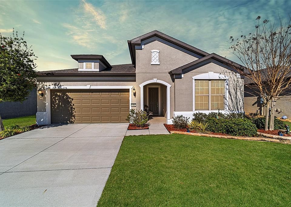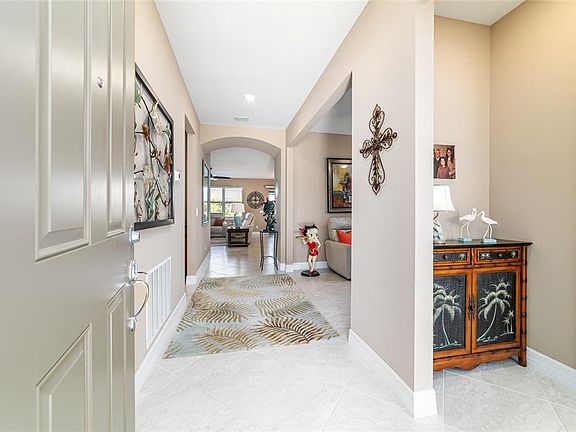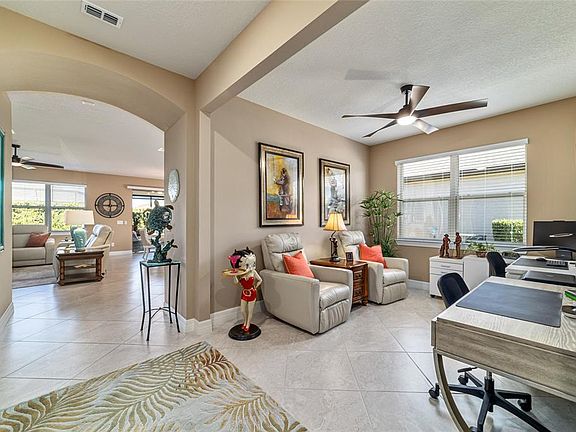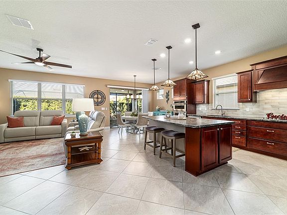 Seize the chance to own this gorgeous Abbeyville model home in the Longleaf neighborhood of Stone Creek, a premier 55-plus gated golf course community known impressive resort-style amenities. This bright and open living plan offers a relaxed and carefree lifestyle with two bedrooms, two bathrooms, a versatile flex room, and diagonally laid tile flooring throughout the main living area. The expansive gathering room is great for entertaining, while a casual dining room with sliders seamlessly connects to the outdoors. The outdoor living area includes a screened Florida room and an adjoining patio, providing an ideal setting for year-round relaxation or hosting friends and family. The chef’s kitchen boasts a premium built-in KitchenAid appliance package, including a cooktop with a wooden range hood and a spacious center island that offers generous space for food prep and casual dining. Granite countertops, a stylish tiled backsplash, and a convenient pantry complete the space and deliver the ease and functionality you have been searching for. The owner’s suite is a peaceful retreat with a spacious walk-in closet and an impressive en suite bath. The bath features a glass-enclosed step-in shower with decorative glass tile accents, a transom window that brings in natural light, a double sink vanity, and a private water closet. Additional highlights include a spacious laundry room with a laundry tub and large storage area, and a two-car garage with an eye-pleasing epoxy flooring finish. These thoughtful features ensure both convenience and practicality throughout the home. Embrace the exceptional lifestyle of this vibrant community, featuring a 24/7 staffed gated entrance for security and peace of mind. Luxury-inspired amenities include heated pools, a state-of-the-art fitness center, a spa, and relaxing hot tubs and saunas. Stay active with pickleball, bocce, tennis, and a softball field, while a dedicated lifestyle staff curates entertainment, activities, and special events to foster connections. Just beyond the gates, enjoy a golf course, pro shop, and restaurant—perfect for socializing and unwinding. Make your move today and experience resort-style living at its finest!