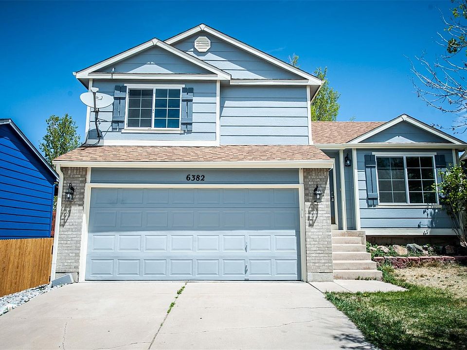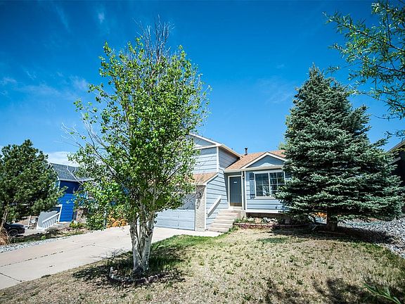 A comfortable home in great condition built in 1998, this tri-level with finished basement has 3 bedrooms, 3 bathrooms, and a 2 car garage. You'll enjoy all new paint, lighting, and flooring throughout plus new appliances and new counter in the kitchen. Kitchen, dining room, and bathrooms feature new laminate wood floors, with new carpet throughout the rest of the house. Master bedroom has mountain view, attached bathroom with shower, and walk-in closet. Full bathroom has new tile shower surround and new countertop. The bathrooms have new water-saving dual flush toilets. Vaulted ceiling in the living room, gas fireplace in the family room. Fully fenced backyard, energy efficient vinyl windows, new roof in 2016, and drywalled garage interior. Laundry is upstairs near the bedrooms. Near Horizon Middle School, Cherokee Ridge Golf Course, and Powers Blvd. You'll be close to military bases, the movie theatre, and a wide array of shopping and dining destinations.