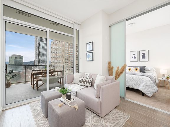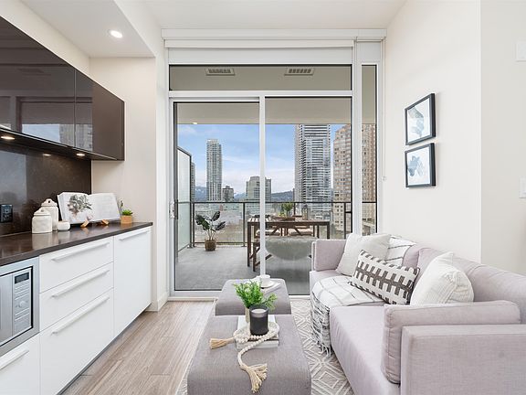 The perfect starter condo or investment property in Metrotown! This stunning 1 Bed, 1 Bath in Gold House North by Rize Alliance has it all - AC, high ceilings throughout, an extra-large luxurious bathroom, integrated Bosch appliances with gas cooktop, and an almost 200 SQFT patio with city and peak-a-boo mountain views. Seamless indoor/outdoor living just in time for summer! Amenities include a 24/7 concierge, fitness centre, social lounge with outdoor BBQ area, party room, and study/music room. All of this, just steps to the Skytrain, Metrotown Mall, Crystal Mall, Station Square, parks, dining, and so much more! Don't miss out - OPEN HOUSE May 6th & 7th from 1-3 PM.