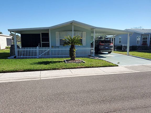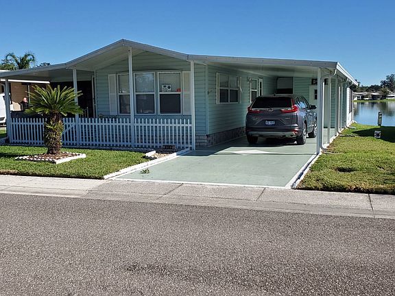 Cozy beach feeling cottage with a open floor concept 2 bedrooms 1 1/2 bath large Master bedroom has beautiful view of the lake Has white pipes AC maintained regularly All appliances in good working condition All laminate floors throughout Tub and shower in main bathroom with a skylight Newer washer and dryer in shed Freezer in shed Furnished with a nice beach touch No pets or smoking home Long covered driveway Pest control every three months Two large screen rooms with nice view of the lake Nice deck facing the lake great for enjoying the sun The square footage does not include the screen rooms or deck measurements are not deemed legal measurements This home sits at leased land with a monthly lot rent of $655, this includes trash pick up twice a week and lawn moving and trimming and pass threw tax's Turn key ready Forest Lake Estates is a 55+ gated 5 star Community . Clubhouse; billiard room; two swimming pools, pool volleyball, hot tub, covered shuffleboard, tennis courts, covered fitness center, mini golf, horseshoes, fishing pond, many activities . Very active living community . This house is priced to sell and won't last long enjoy your winters in the sun