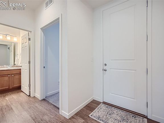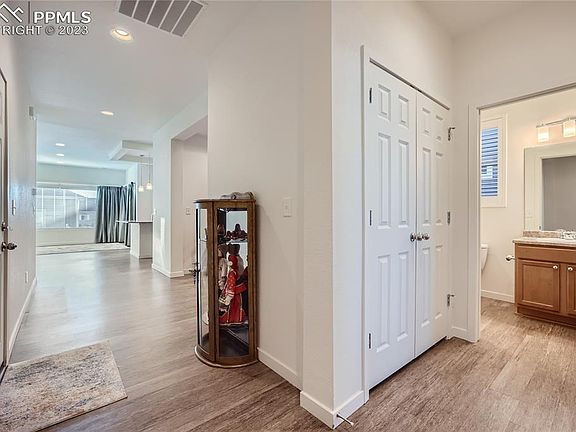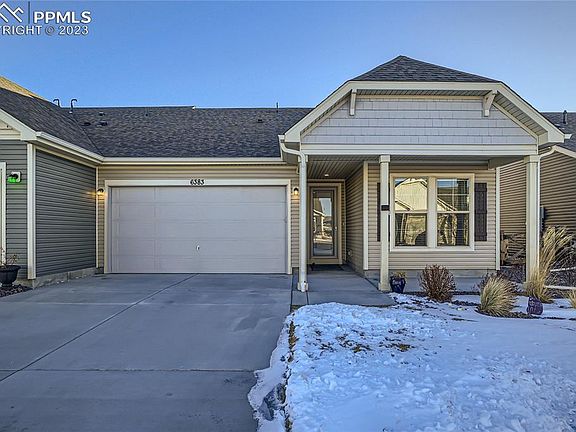 Welcome to this fabulous LIKE NEW home in the 55+ community The Retreat of Banning Lewis! This home has many upgrades including the bonus space for office or formal dining; custom window treatments and so much more. Primary bedroom boasts large, walk in shower; private bathroom and walk in closet; large 2 sink vanity. Living area overlooks charming, fenced back yard with sprinkler system. Owner is responsible for back area but front yard is maintained by the HOA. Lovely kitchen with black appliances (like new - oven and dishwasher never even used!), gorgeous countertops and large pantry. Sizable island and undermount sink! Plenty of room for the living space and eating area and then you can utilize the bonus den/office/dining however you desire. Additional bedroom facing front of home and adjacent to full bath (tub/shower) with plantation shutter. Finished two car garage with fantastic, upgrading cabinets on both sides. This community boasts low HOA dues and full access to The Retreat pool, clubhouse, sizable workout area with exercise equipment. Plenty of space perfect for gatherings with a full kitchen and multiple seating areas and enjoy playing at the pickleball and bocce ball courts. Also, full access to Banning Lewis Ranch amenities which include the Ranch House, outdoor pool and hot tub, 75+ acres of parks/trails/open space, dog park, tennis courts, and a community garden. Come see this full main level living! No basement! All appliances stay including washer and dryer! Photos with furniture for living room, kitchen area and primary are virtually staged.