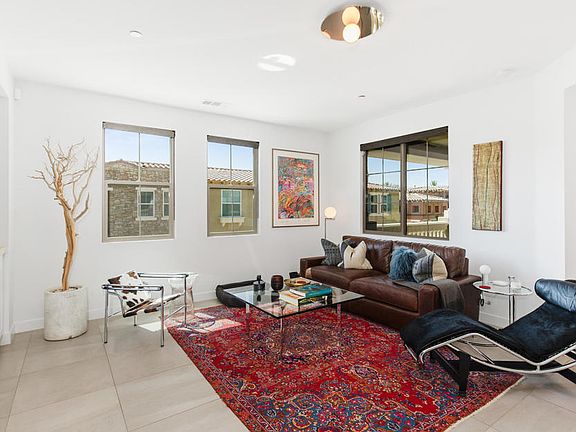 Stunning sun-filled open floor plan with a contemporary flair interior! The design of this Elevated Plan 2 with 2BD+Den/Office end-unit flows freely and dramatically throughout with a focus on indoor and outdoor living/entertainment. The gourmet designed kitchen boasts Quartz counters, recessed lighting, white shaker-style cabinetry, artistic backsplash detail, Bosch stainless steel appliances with a pilotless gas cooktop, island countertop seating and more... this Energy-Efficient home also has Central Air, tankless water heater, fire sprinklers, LED lighting, pre-wired for ceiling fans and multimedia, and a interior laundry. The Living Room has been designed with a gorgeous natural stone fireplace surround, custom-built-ins, and Emser 24x24 tile flooring. This home also has designer wallpaper and custom designed window coverings throughout. The elegant Master Suite is large with patio/deck access and South Mountain Views, a walk-in closet, large shower with designer tile, dual sinks w/hi-quality fixtures, and full-width vanity mirrors. Brava is an inviting prime central Palm Desert location. This gated community of 114 homes offers the lifestyle and sophistication reminiscent of ''Old Tuscany''. Relax at 2 pools/spas, workout in the fitness center, or use the business center at the clubhouse. HOA's include cable/internet landscaping & exterior building maintenance including roof coverage! Located near restaurants, shopping, golf, and entertainment.