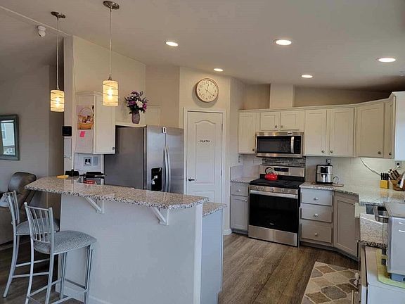 Price reduced for quick sale! Lightly lived in home in a highly desired 55+ park with recently renovated community clubhouse which includes swimming pool, library, kitchen and pool table. Beautiful home has upgraded items including oversized front porch, 2 car garage including workbench and shelving which stays. Bright and open home with vaulted ceilings, fans and solar tubs. Beautiful kitchen includes Perma Treat granite countertops, SS appliances and the oven has never even been used. Primary with dual sinks, step-in stall shower, and 2 closets, one which is large walk-in. Grip accessible features. Laundry