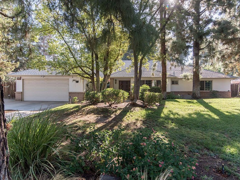 This fantastic NW Fresno home on a large corner lot is nestled in large, mature trees and beautiful landscaping. As you enter the home, you find a spacious living room to your right and dining area on your left, directly in front of you is a bright and oversized family room. The stunning kitchen and bathrooms have been completely remodeled with granite counter tops, updated backsplash and white cabinets. The kitchen overlooks the sparkling pool complete with a diving board. The hall leads to 3 bedrooms, 2 baths, and the laundry room, as seen in most standard Wathen Mansionette models. Exiting to the large backyard, you will see an awning providing cover for those hot summer days. The side yard provides potential RV access and has no neighbor on the north. This is a great home!