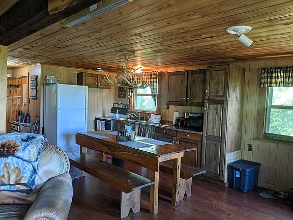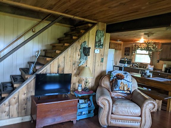 Amazing rustic adventure. Picaresque surroundings of rolling valleys and beautiful Raystown Lake. This property is situated on over an acre of beautiful ground in Huntingdon County. Home features 2 large bedrooms, an eat in kitchen and central air. On private road adjacent to federal/state game lands and in protective covenants. Updated flooring, insulation, paneling, carpeting and kitchen cabinets. Property is rounded out with a large garage capable of storing recreational equipment.