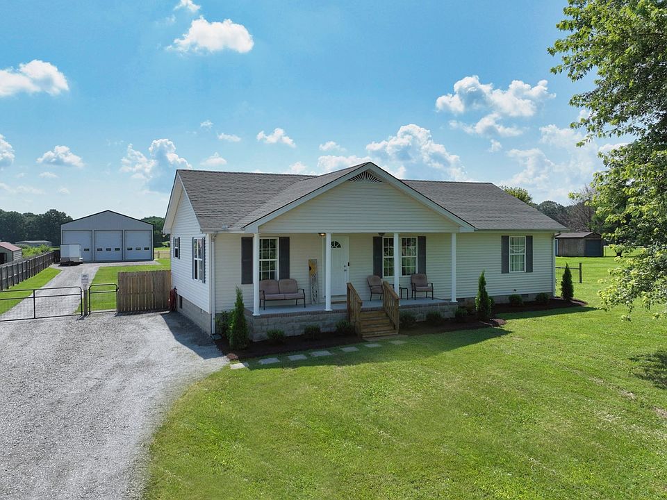 Charming Country Home with A 40X40 Garage-- Welcome to your peaceful home in the heart of the countryside! This beautifully maintained 3-bedroom, 2-bathroom home offers the perfect blend of comfort, privacy, and functionality. New AC, new flooring, new paint, freshly landscaped, new deck, the 40x40x17 garage has 3 bays with 14 foot tall doors constructed with 5 inch concrete Nestled on a generous lot this home features a warm inviting interior, a bright kitchen with ample cabinet space, and a cozy primary suite with a private bathroom. Two additional bedrooms provide flexible space for family, guests, or a home office. One of the standout features is the extra-large detached garage – ideal for mechanics dream, shop pros, car enthusiasts, or those needing abundant storage or workshop space. With high ceilings and wide doors, it’s a rare find in a country setting. If you’re looking for space in a country setting this gem is a must-see!