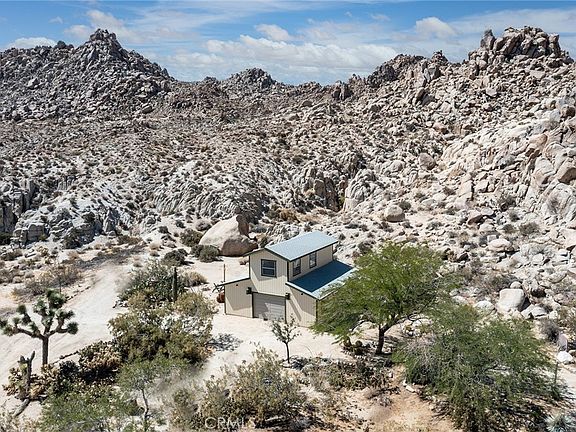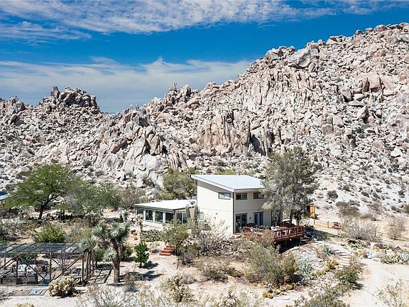 One of the best locations in Joshua Tree. Property borders the Joshua Tree National Park, not by the entrance, so very quiet and private and incredible views! Rocks abound! Main house is 2 bed, 2 bath, 2550 esf. Guest house has a new roof and siding, 1 bed, 1 bath, 600 esf. Property has a 1200 esf garage/workshop. Main house is 2 story with master bedroom upstairs with fantastic views. Open beam ceiling, renovated bathrooms, newly painted large deck with awesome views. Land is covered with desert plants, well tended. Many, Many barrel cacti. Perfect for weekend rental or...