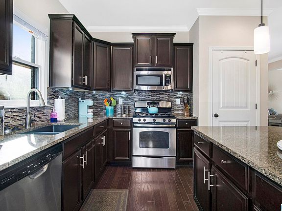 Welcome Home! Spacious 5 bedroom full brick home in Creekside at Trace Crossings located on cul-de-sac street. Large covered front porch welcomes you. Enter into a beautiful living & dining area that leads to the open great room and kitchen area. The kitchen has island with granite counters, pantry, & pendant lighting. Great room boasts hardwood floors, vaulted ceiling with marble fireplace. The main level master is spacious with large closet and master bath has garden tub and shower. Upstairs has loft, 4 bedrooms and 2 full bathrooms. The detached garage offers walk up storage with an area large enough to finish as a workshop or studio. Schedule your showing on this lovely home today!