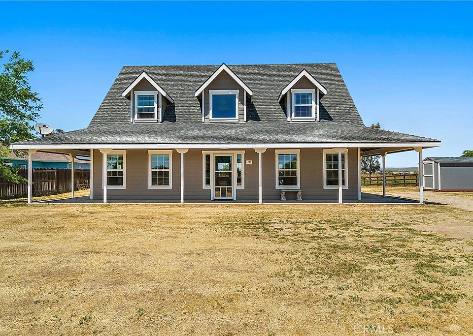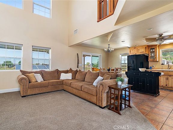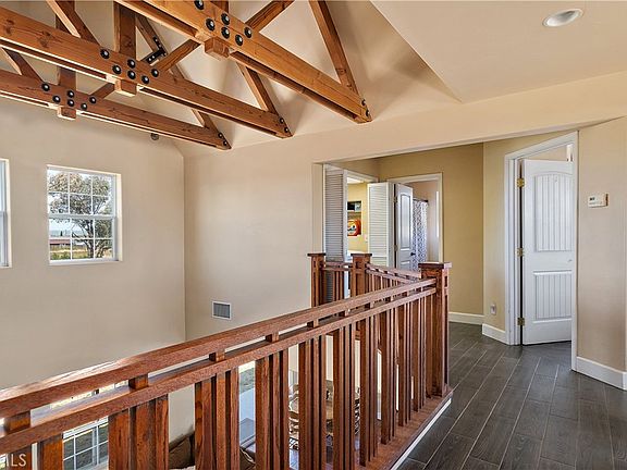 Are you ready for peaceful country living? Situated in a picturesque setting with vistas of rolling hills and sun kissed vineyards, this flat and usable one-acre property is perfect for enjoying all that the rural lifestyle has to offer, including gardening and FFA/4H projects. With over 2,000 square feet of flexible living space, this move-in ready residence features three spacious bedrooms plus an office, and three well-appointed bathrooms. Stepping into the formal entry and living room, you are greeted with a dramatic staircase and hanging fixture, expansive open beamed ceilings, wood tile flooring, smooth trowel finished walls, and an idyllic wrap around porch perfect for enjoying beautiful Paso Robles summer nights. Recently updated black Samsung appliances (refrigerator included), knotty pine cabinetry, a moveable island, and a walk-in pantry make the sunny kitchen a fun place to prepare your favorite recipes, and the adjacent dining room is the perfect spot to gather around the table with friends. In addition to a first level guest bedroom, the versatile floor plan also enjoys a comfortable family room with a tray ceiling and stylish barn doors, and an office which can be reimagined as a fitness space or hobby room. The primary bedroom includes an en-suite bathroom with tile flooring, shower with mosaic details, and a walk-in closet. Conveniently located next to a full bathroom and laundry with included washer/dryer, an additional secondary bedroom gives you plenty of space for family or out of town guests. Additional hi-lights include pulldown accessible attic storage, leased solar system, air conditioning, ceiling fans and a Tuff Shed. Don’t miss your opportunity to call 6385 Burgandy Lane home!