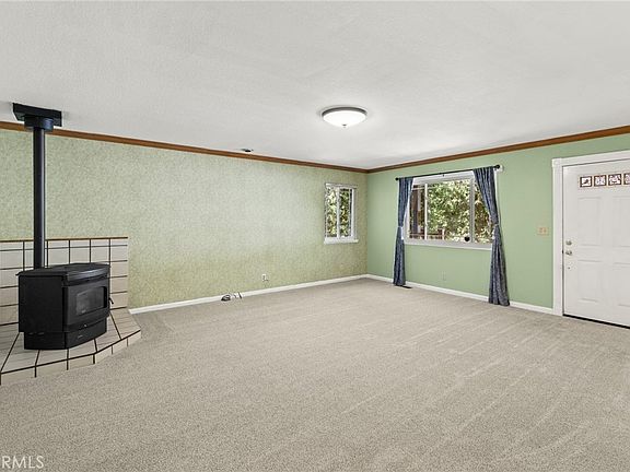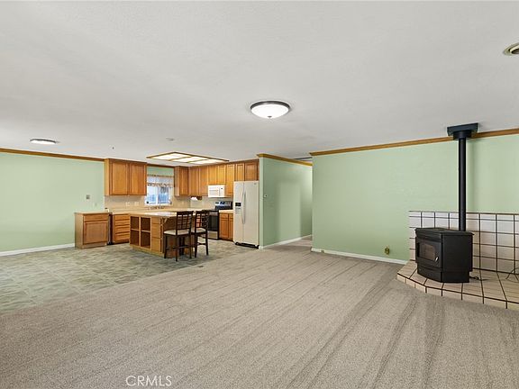 A WINNER FOR A FIRST TIME BUYER OR SOMEONE READY TO RETIRE! This 2 bedroom home has a large living room with brand new carpeting and a pellet stove. An open floor plan with the kitchen and dining area open to living room. Huge dining area with a picture window for lots of natural light. Kitchen features a spacious island with storage and a wine rack. Kitchen countertops are solid surface and all the appliances are included. There is a wall of pantry cabinets and a counter with storage below in the hallway to the garage. Primary bedroom has new carpeting and an attached bathroom with dual sinks and a jetted tub/shower. Guest bedroom with new carpeting and attached bathroom that is also accessible from the hallway. Crown Moulding, Whole House Fan, Central Vacuum and Ceiling Fans are just a few more great features of this home. Two car garage with a good sized shop area with a skylight. Out front you will find a convenient carport to park your extra vehicles and in the backyard there is wonderful private patio great for entertaining or just relaxing. There are 2 Storage Sheds in the back and Garden Planter Boxes along the side where the Seller said he grew some amazing veggies. Make an appointment to see this home, You wouldn’t be disappointed.