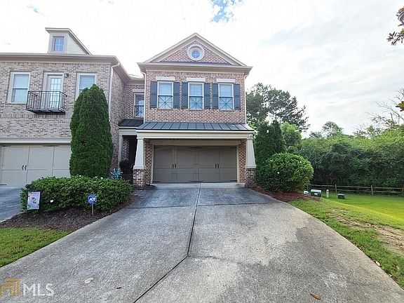 This sun-filled, end unit townhome has the largest greenspace in the enclave. Enjoy plenty of private space to spread out and relax, both inside and out. The entry level features a large foyer, 9-foot ceilings, family room with gas fireplace & built-in bookcases. Kitchen has granite counters with breakfast bar & opens into living & dining area. From there you can step out onto the freshly stained deck, where you can enjoy a cup of coffee and a view to the woods. Create your own flowering garden here to welcome both butterflies and hummingbirds. The second level offers a large primary suite with cathedral ceilings, spa-like bath with dual vanities, jetted tub, separate shower, and walk-in closet. There are two additional bedrooms upstairs and another full bathroom. The terrace level has been finished and the terrace bath is stubbed and ready to be completed. This level opens onto a private patio with walk-around access to the driveway. This large space offers so many options: home office or business, separate living or game room, if the bath is finished this could be a wonderful suite for guests or extended family. This home also features a two-car garage and a long/wide driveway, providing space for several additional cars. The community is gated with guard entry, 2 sparkling pools, ALTA tennis courts, fitness, clubhouse, dog park and nature trails. Shopping, restaurant, and public transportation are all within 5 minutes and Truist Park, Downtown, Midtown and airport are 20 minutes away. 2021-07-27