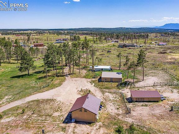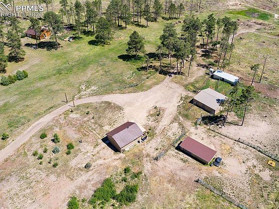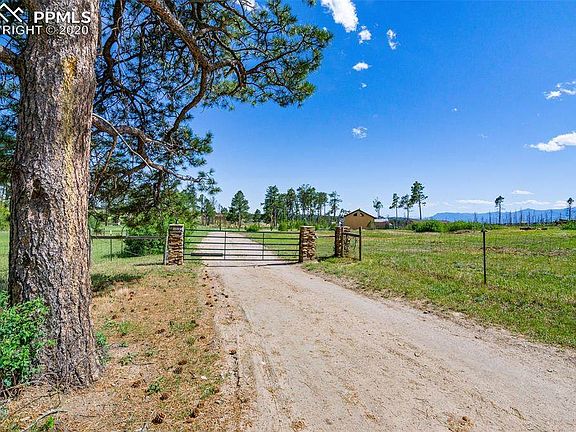A rare find of 14 acres in Black Forrest. Property has been mitigated from the fire and it has opened it up to incredible views of the mountain range. A old pole barn has been converted into a non permitted cabin connected to septic and well. 36x36 metal barn with 3 stalls, tack room and feed storage. 14x36 loafing shed with water, and an additional shed make this property perfect for your animals. Soil samples for new septic and potential build site to be included. Much of the work has been completed to parcel off the 5 acres, call for more information.Bring your horses and build your dream home!