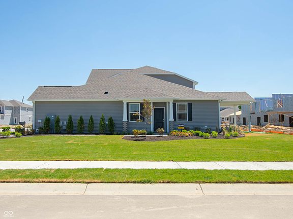 MODEL HOME by D.R. Horton for sale includes upgraded landscaping and more! This low maintenance Columbia townhome in the Towns at Trailside. This single story town-home features 2 bedrooms, 2 full baths and ideal open layout. Enjoy entertaining while guests gather at the luxurious kitchen island, in the breakfast nook or spacious great room. Luxury abounds with a long list of features including 9 foot ceilings, 42 inch cabinets with crown moulding, quartz countertops, durable laminate flooring, tile shower in main bath and more. The split bedroom plan offers privacy for guests. Finished 2 car garage provides added insulation for Indiana winters. Enjoy time on your covered patio. Enjoy living in constant staycation mode with incredible amenities such as a clubhouse, pool, fitness center, bocce, tennis, pickleball and basketball courts, community gardens, extensive trails and more. Home includes America's Smart Home Technology featuring a smart video doorbell, smart Honeywell thermostat, Amazon Echo Pop, smart door lock, Deako plug 'n play light switches and more