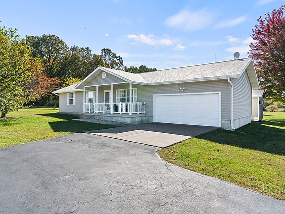 Nightly rental approved! This remodeled home offers 3 beds, 2 baths, 5 cleared park-like acres w/ small pond, spacious deck, storm shelter, shop, and multiple storage sheds! Enjoy a covered front porch and spacious open floor plan inside. Kitchen features Quartz counters, tile backlash, all stainless appliances are included, and there is a bar for seating! Off the kitchen is a dining area and wood burning stove. Down the hallway is a washer/dryer closet, a primary bedroom w/attached bathroom, 2 more bedrooms, and a full hall bathroom. The backyard features an enclosed sunroom, large deck with 25' round pool, storm shelter, shop with sliding door, and a shed that has been converted to a guest room with window heat/air. There is also additional storage sheds, a picnic table area, and 2-car carport. Located in Strafford Schools only 5 minutes to Springfield and 1 minute from Hwy 65 access. Call to schedule a tour today!