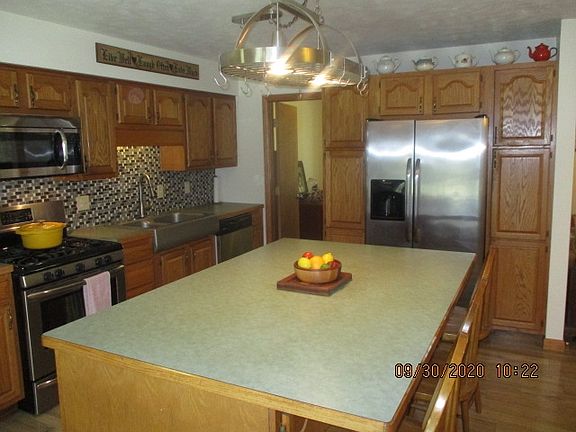Country Living at it's finest checkout this home that features over 1800 finished square feet and is open concept to the living room, dining room and kitchen. The dining room is graced with a ventless FIREPLACE! Home features 3 large bedrooms, 2 full baths and an office off the kitchen. Laminate hickory flooring throughout the house and tile in the bathrooms and showers. The best of country living with 1.5 acres, a stocked pond and small fish pond with a waterfall off the deck in the back of the house. This property has three outbuildings (one is a pole barn building). An above GROUND SWIMMING POOL with vinyl fencing can also be found in the back yard. Most appliances are included and most personal property is negotiable.