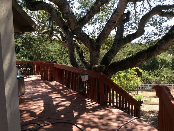 Very private and quiet is this 3 bedroom 2.5 bath home on 1.75 acres with room to roam. Contemporary design on one level, with a little playroom upstairs. Beautiful large kitchen with amazing granite, stained glass entry, fabulous hardwood floors, wonderful decks for tea parties and BBQ's. Real artist's studio, room for horses, chickens and such!
