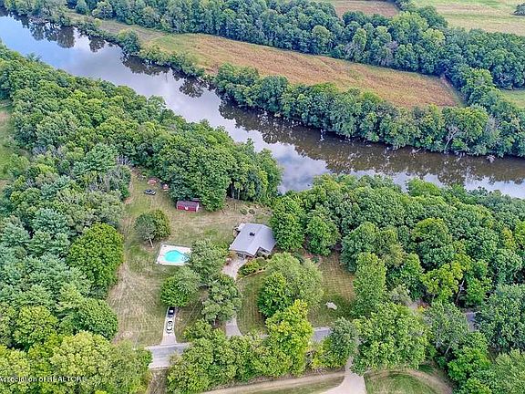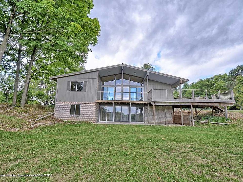 Looking for a property & location with one in a million features? This 3 bedroom 2 bath home sits high above the Grand River centrally located between Lansing & Grand Rapids. Featuring nearly 7 acres with almost 1000 ft of private frontage, the views are breath taking! This home & setting are truly unique! Beamed cathedral ceilings in the living room boast a wall of glass & easy access to the 44ft long deck. 3 bedrooms on main floor. Kitchen is just right sized for the chef. Main floor bath is updated with tiled walkin shower. Lower level is full walkout with more incredible views. A non conforming bedroom is already done, plus a potential 4th bedroom could easily be finished. Outside find an inground heated pool! Storage space in the 12x24 shed for tools, toys, tractors & more! Home has metal roof, newer mechanicals & new carpet in LR & most of main floor, vinyl flooring in lower level! Homes with this setting & potential are once in a lifetime!