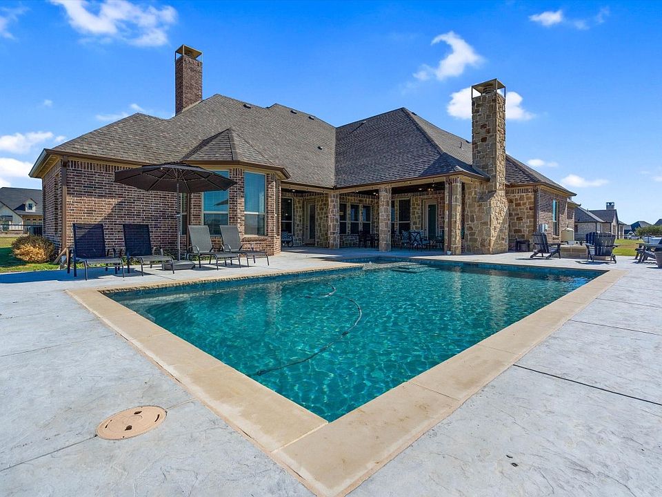 Discover the epitome of luxury living at 6387 Rigel Road in Starlight Ranch. This stunning residence offers four bedrooms, five full baths, and two spacious living areas, providing ample space for your family to thrive. The four-car garage, featuring wooden cedar garage doors, adds a touch of elegance to the exterior. Step inside to find an office conveniently located next to the main entry, perfect for work or study. Hardwood floors and a stone and brick gas fireplace create a warm and inviting atmosphere. The kitchen showcases granite countertops, while an upstairs flex space awaits your personal touch, whether it becomes a media room or an additional gathering area. Outside, the large backyard boasts two covered patios, ideal for relaxation and entertaining. And the cherry on top? A saltwater pool, installed in 2022, offers the ultimate oasis for endless summer fun. Welcome to your dream home at 6387 Rigel Road.