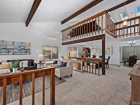 Beautiful two story home in Littleton is ready for a new owner! This charming 3 bedroom, 3 bathroom home backs right to the greenbelt with walking trails just steps away. Home features include a fireplace and bulit-in wet bar in the family room perfect for entertaining, vaulted ceilings, skylights, loft area with built-in bookshelves that could be used as a perfect office space, newer stainless steel appliances in the kitchen, and brand new carpet throughout. The large balcony off the master bedroom has plenty of space to enjoy your morning coffee with a view of the foothills. Head out to the backyard through the enclosed patio and you'll find two storage sheds for all of your garden needs. The basement offers ample storage space and is awaiting your finishing touches. If you're looking for a great home in a great location, this is a must see.
