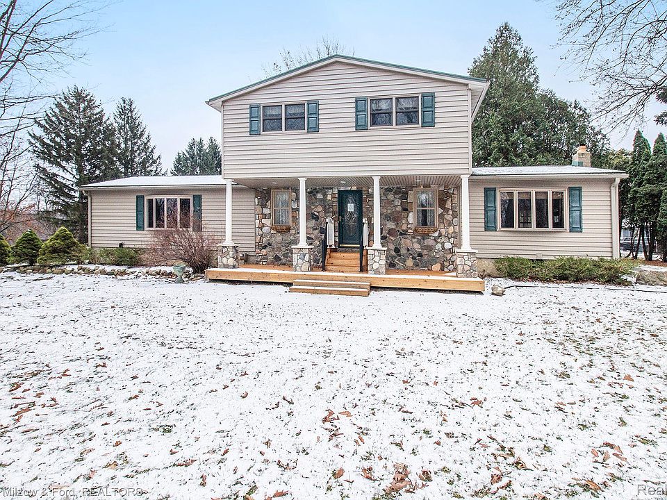 Solid as a rock colonial perched on nearly 5, breathtaking acres. Meticulously maintained by its longtime owner who has cherished this home for 50 years. Perfectly centered on the parcel plus a pond & wooded backdrop offering a one-of-a-kind setting! Charming curb appeal accented by a welcoming front porch leads you inside. Dining space adjoins a completely renovated kitchen w/granite topped, quality cabinetry & premium appliances. Dining space w/hardwood flooring & wainscoting opens to the family room w/lots of natural light & bespoke beams plus a patio door to the outside. A sliding glass door off the kitchen leads to the recently stained & sprawling deck overlooking the property. A first-floor full bath & laundry yield loads of function. Upstairs discover 3 neutral & sizable bedrooms each with abundant natural light. A renovated full bath is beautifully appointed and features a roll-in, fully ceramic shower. The full basement offers a slew of storage, recreation & workshop possibilities. Outside is an aficionado’s dream come true; a 30’ x 50’ heated garage (circa 1992) with has electricity & water. The 20’ x 30’ barn with a second story offers a slew of possibilities on both of its levels. The one car attached garage is ideal for everyday use and all in all this property offers the potential to house 6 vehicles! Other recent & big-ticket improvements; metal roof, siding, exterior trim, gutters, windows, entry doors, HVAC, hot water heater, electrical panel, septic field, well & renovated barn. Creature comforts include a whole generator, irrigation system & natural gas. This is one of those rare homes that leaves very little left to do. The quietude will make you feel like you’re a world away, yet you’ll find yourself around the corner from Independence Oaks and minutes to I-75 & Downtown Clarkston. Extensive information pertaining to outbuilding and animal restrictions is on file as is a recent appraisal for $530,000. Don’t sleep on this complete package or you may not sleep in it! IDRBNG