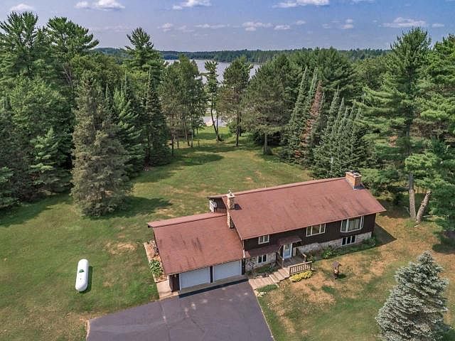 MUSKELLUNGE LAKE HOME - Do not hesitate to come view this property on 272-acre Muskellunge Lake. Not only is the 3 BR, 2 BA 3,000+ square ft house beautifully maintained, but the attached 2-car garage, detached 2-car garage, blacktop driveway, 1.57 acres and 100 ft of frontage scream value. The house features gorgeous wood flooring on the main floor, a formal dining area, and spacious living room with a towering stone fireplace and patio doors to the lakeside deck. The lower level boasts a large family room, rec room with wet bar, enclosed porch, the 3rd BR and 2nd full BA. The parcel is one of the prettiest in the area with rolling green lawns and perennial landscaping situated right off the ATV/Snowmobile trails. With lack of inventory, take the time to view this home sooner rather than later!
